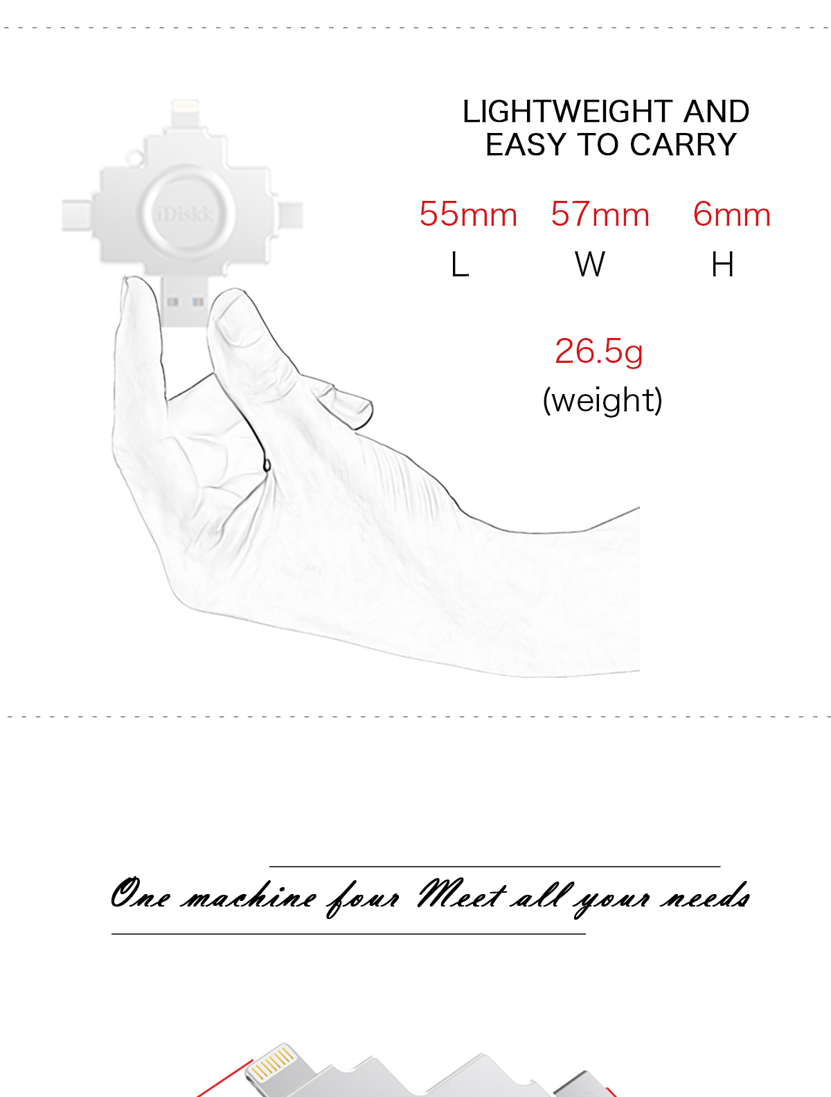 - Product features : USB 2.0+ lightning